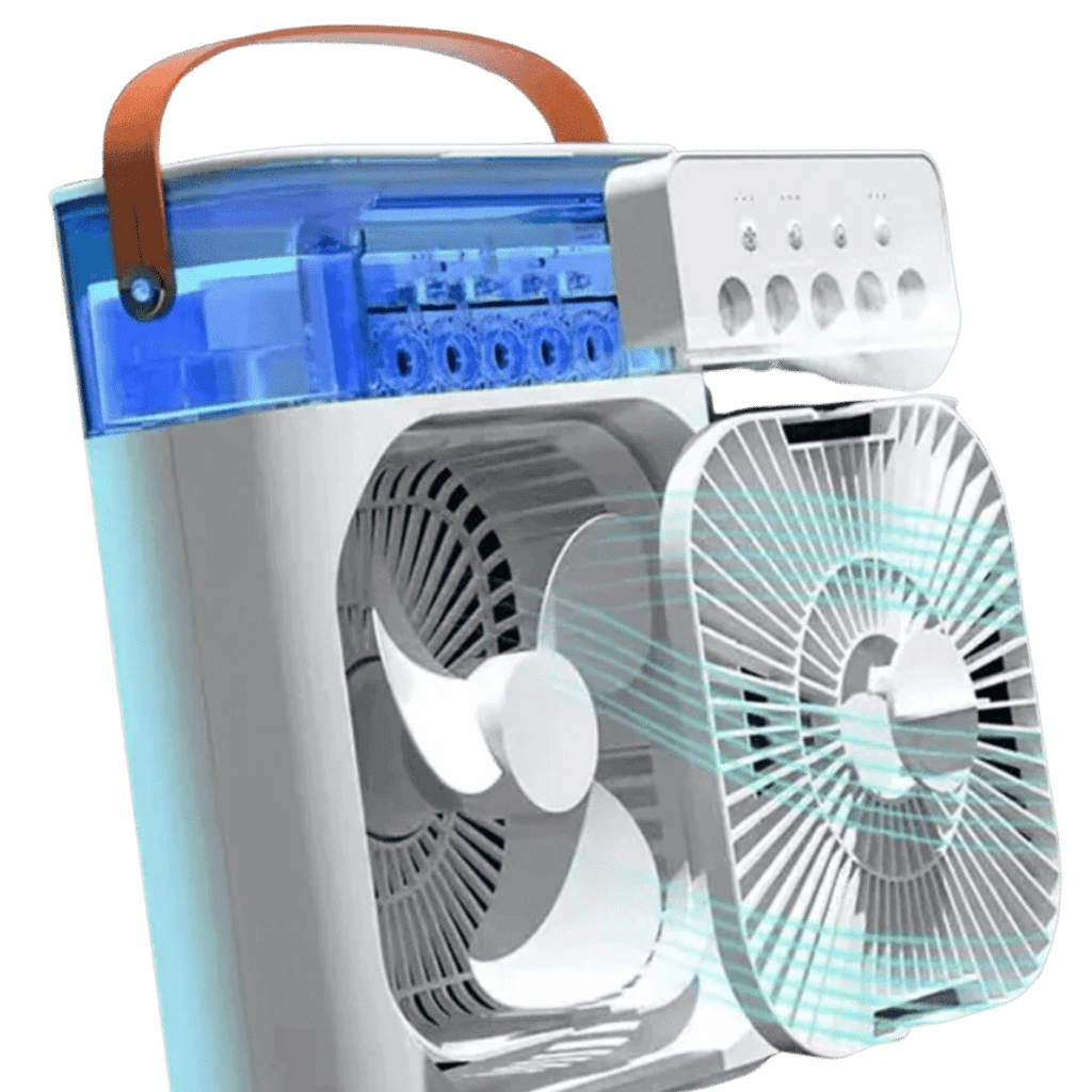 Genieße die Bequemlichkeit von vier Geräten in einem. Dieser tragbare Luftkühler vereint die Funktionen eines Luftbefeuchters, Luftreiniger, Tischventilators und Nachtlichts und bietet umfassende Kühlung und Komfort in einem. Mit einem 400 ml großen Wassertank kann der vabola - Flow Luftkühler 4-5 Stunden lang kühlen, ohne dass häufige Nachfüllungen erforderlich sind. Der Transparente Wassertank ermöglicht es ihnen den Wasserstand auf Blick zu kontrollieren.